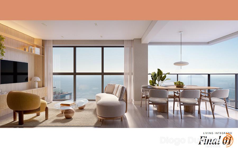 • Design moderno e funcional: Apartamentos com plantas otimizadas, persianas motorizadas, forro de gesso, porcelanato, laminado de madeira nos quartos e opções de integração de sacada com fechamento panorâmico.